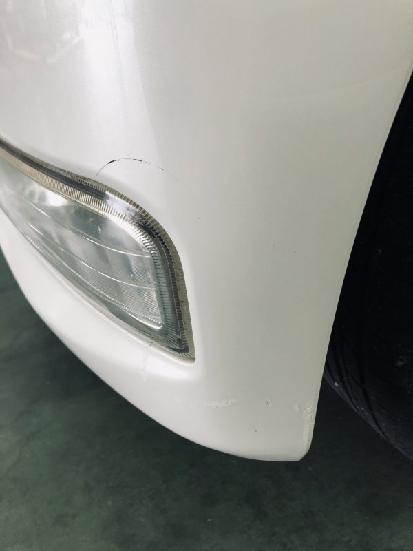 フロントバンパーを縁石ブロック等に当ててしまい修理のご相談でご来店頂きました。