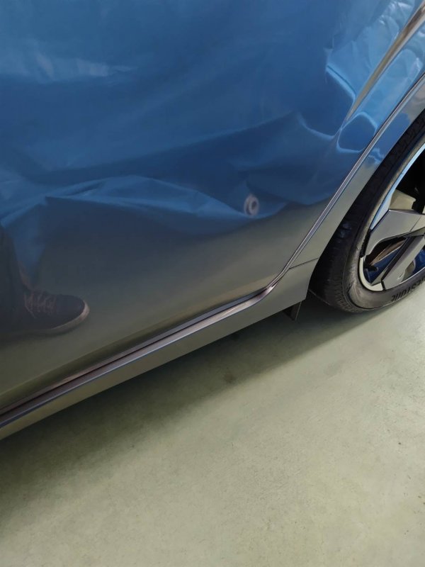 佐賀県鹿島市|オーラ(日産)のキズ・へこみ直し事例(左リアドア 左サイドシルパネル)
