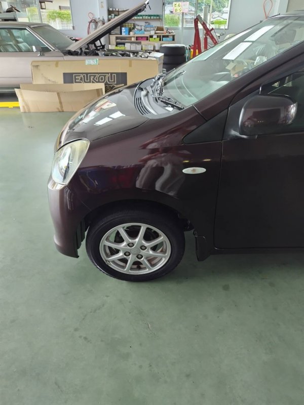佐賀県鹿島市|ミライース(ダイハツ)のキズ・へこみ直し事例(フロントバンパー 左ヘッドランプ 左フロントフェンダー 左フロントドア 左ディスクホイール その他)