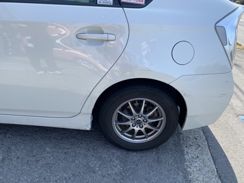 大阪府 羽曳野市 トヨタ プリウス 国産車 フロントバンパー リヤバンパー 左リヤドア 左リヤクォーター 左サイドステップ 鈑金 修理 部品 交換 キズ ヘコミ 直し