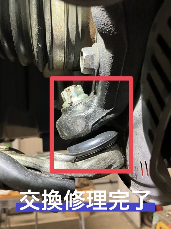 | 修理の箇所・サービス内容 | ボールジョイントブーツ(片側)交換、スタビライザーリンク(片側)交換、 その他整備あり 整備&車検 |