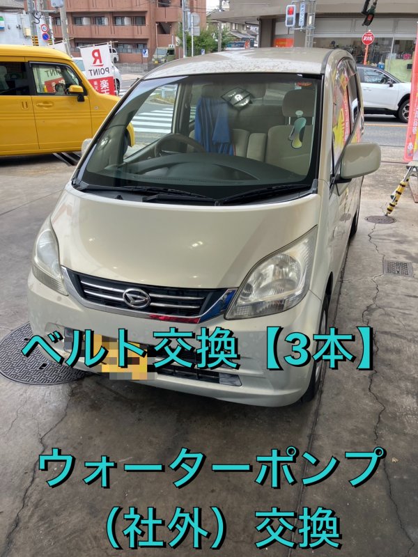 愛知県名古屋市南区|ムーヴ(ダイハツ)の修理・点検・メンテナンス事例(ベルト3本交換、ウォーターポンプ(社外)交換 )