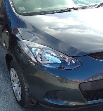 熊本県八代市|マツダ2(マツダ)のキズ・へこみ直し事例(前バンパー ライト キズ ヘコミ 修理 鈑金)