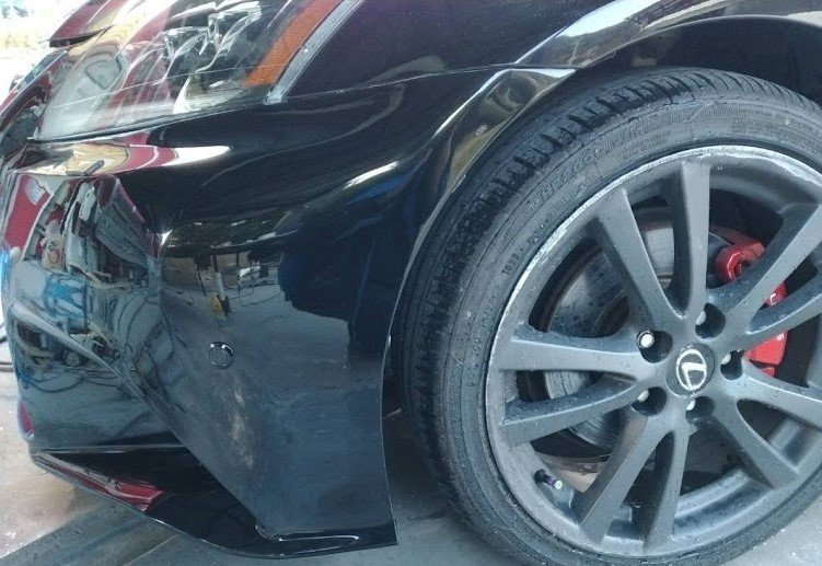お客様が左折時に壁にこすってしまいキズが発生。当店のホームページを見てご来店頂き、修理のご依頼を頂きました。