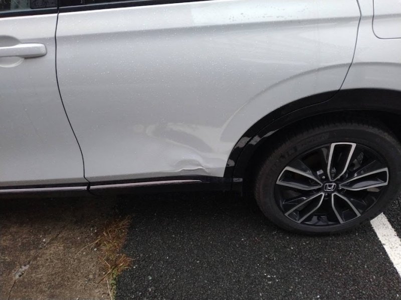 熊本県熊本市北区|ジェイド(ホンダ)のキズ・へこみ直し事例(左後ろドア タイヤ前(フェンダー) キズ ヘコミ 修理 鈑金)