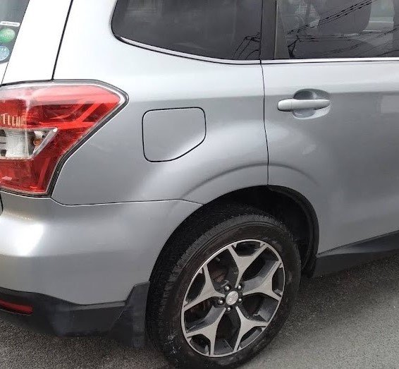 熊本県熊本市北区|フォレスター(スバル)のキズ・へこみ直し事例(右後ろドア 後ろタイヤ上(フェンダー) キズ ヘコミ 修理 鈑金 )