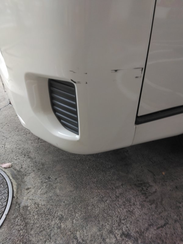 トヨタ ハイエース フロントバンパー鈑金修理事例 キズ、へこみ修理 天現寺 港区