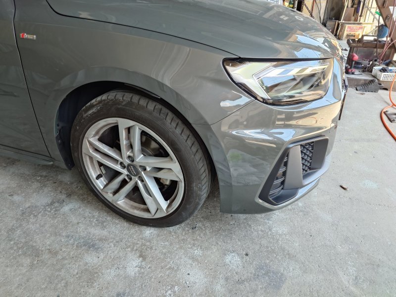 アウディ A1 フロントバンパー鈑金、フロントフェンダー、ヘッドライト交換修理事例 港区 天現寺