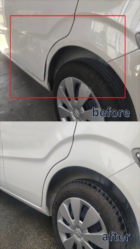 愛知県名古屋市瑞穂区|ワゴンR(スズキ)のキズ・へこみ直し事例(リヤフェンダー周辺キズへこみ修理リヤフェンダー)