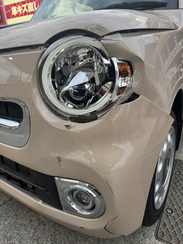 愛知県名古屋市瑞穂区|ラパン(スズキ)のキズ・へこみ直し事例(フロントバンパー、ヘッドライト、フロントフェンダー鈑金)