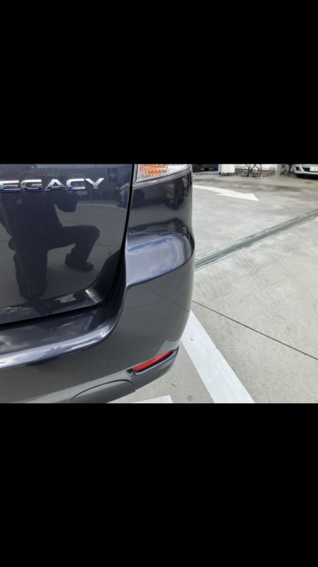 芦屋市 スバル レガシィ 鈑金 修理 キズ直し 凹み えぐれキズ リアバンパー