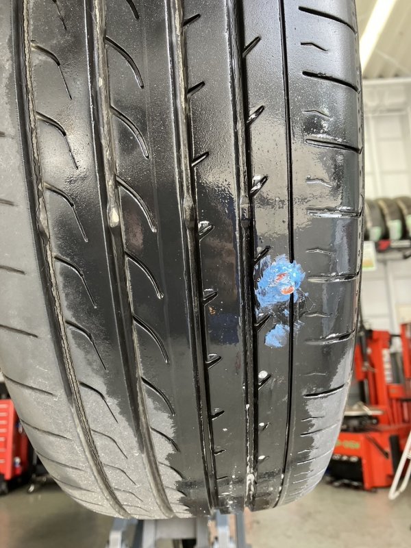 パンクに気がついた時は早めに近くの修理できる店にお問い合わせ又は運転して行ってください。