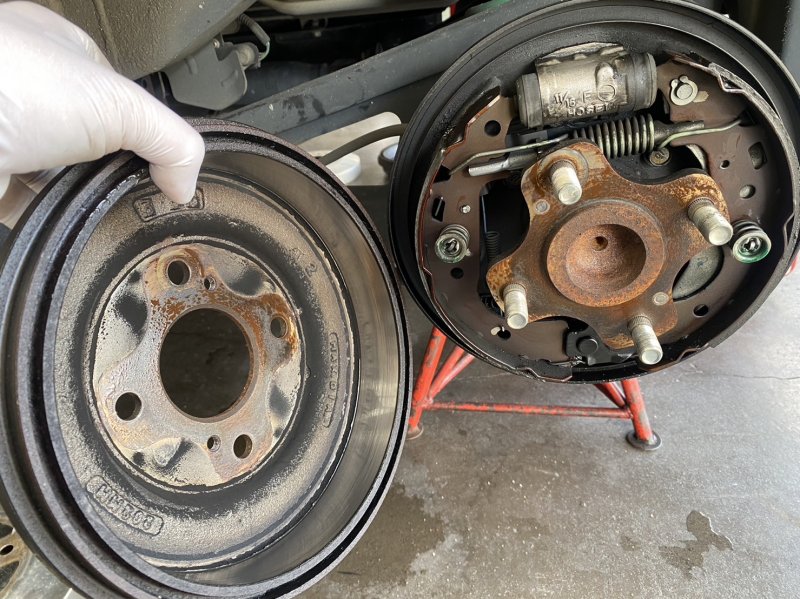 今回は車検後の定期点検でドラムブレーキ内の点検で
