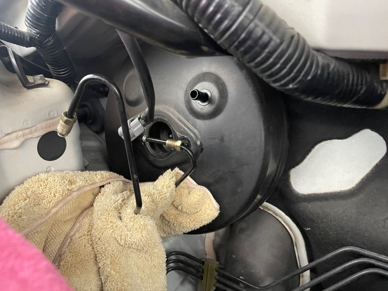 交換は車内のブレーキペダルとの接続を取り外し、エンジンルームはマスタシリンダーを取り外せばブースターはフリーになりますが、