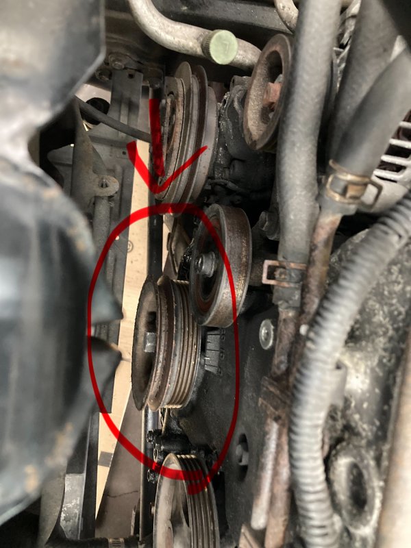 ジムニー(スズキ) レトロ クランクプーリー交換 サビ 酷い クランクシール交換 ファンベルト交換 年式なりの劣化 神戸市 須磨区 長田区 垂水区