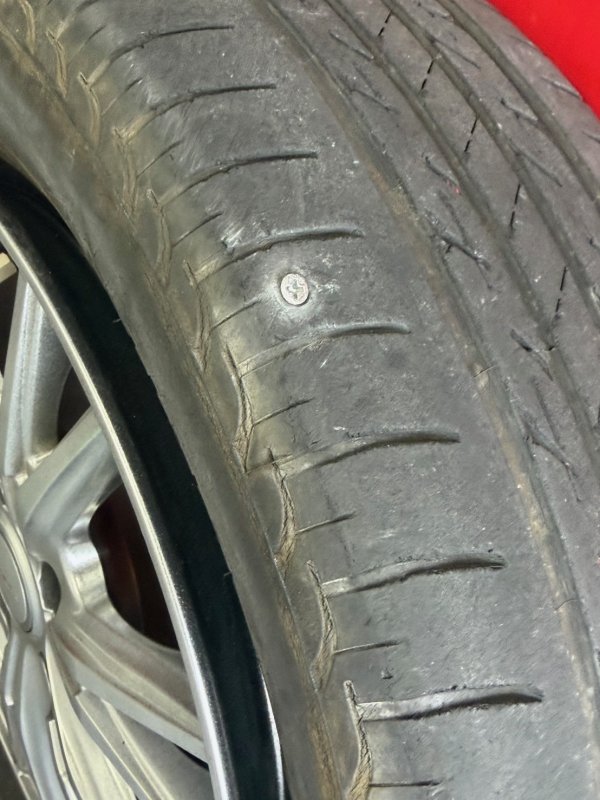 片側のパンクにはなりますが、今回はお客様ともご相談させていただき、タイヤメーカーさんには私の方で価格交渉もさせていただきましたのでフロントタイヤ左右での交換でご依頼いただきました。