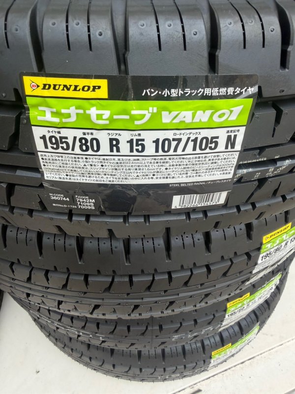 今回はダンロップタイヤ様のエナセーブVAN01 195/80R15 107/105Nでご用意させていただきました。