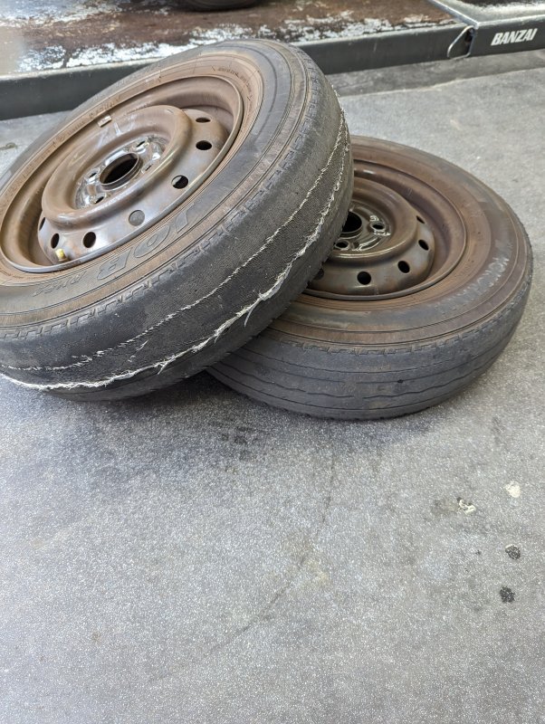 この交換前のタイヤすごく擦り減っていて非常に危ないです。