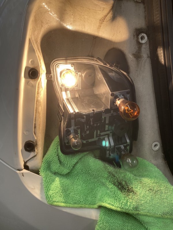 無事電球交換後、点灯の確認も行い、テールユニットを組み付けてから車体に取り付けて作業完了です。