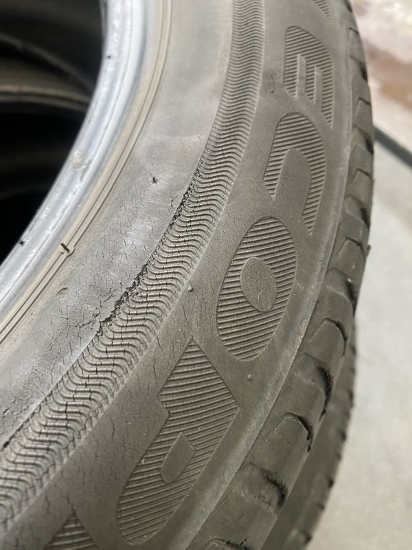 車検でのご入庫ですが、タイヤの表面も劣化してよく見るとひび割れが多く発生していて、過度な負荷によりブロック部分も欠けもしてしまっています。