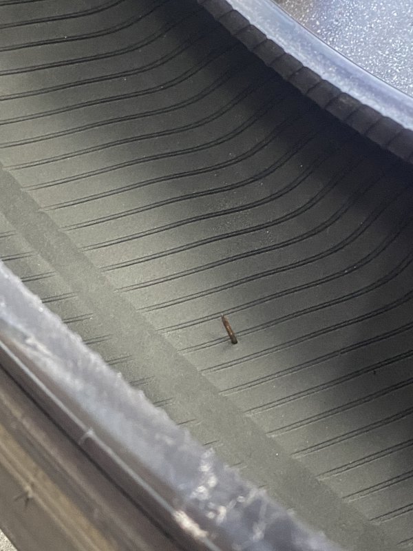 一旦お車からホイールを取り外し、確認したところ1本の釘がぐっさり刺さっており、お客様に報告すると気持ち悪いので交換してくださいとご依頼をいただきました。