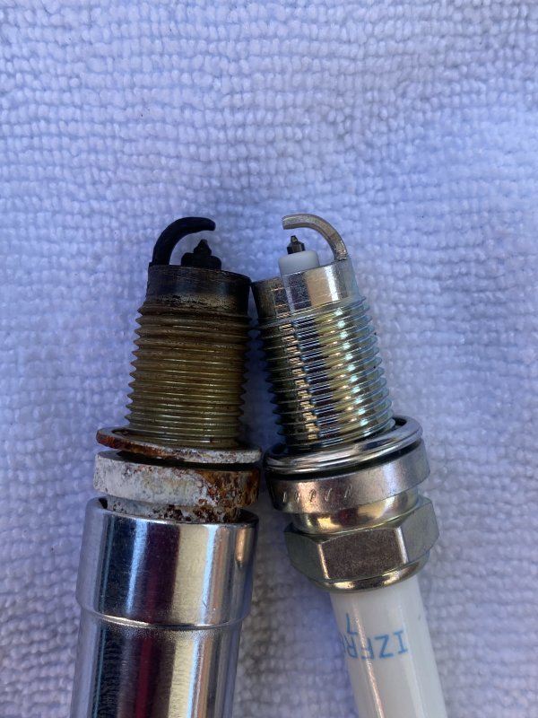交換前と新品のプラグとの比較を見ると元々のプラグの状態がかなり悪く感じます。