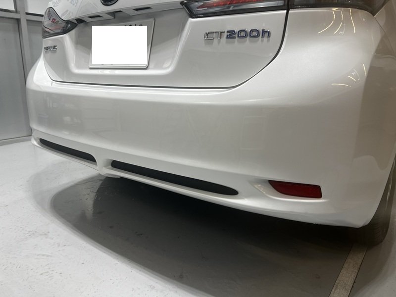 キーパーコーティングも一緒に! 広島市安佐南区|CT200h(レクサス)のキズ・へこみ直し事例(後ろのバンパースリキズとキーパーコーティングセット)