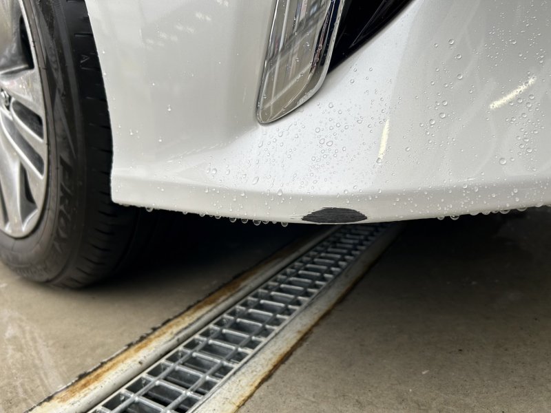 お客様が駐車時に車止めに接触。前バンパーの下の部分にキズが発生。