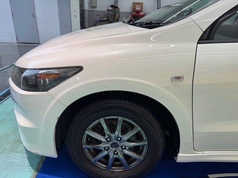 職人による再塗装: お客様のお車のボディカラーに合わせて、プロの塗装職人が丁寧に調色し、ムラなく再塗装を施します。