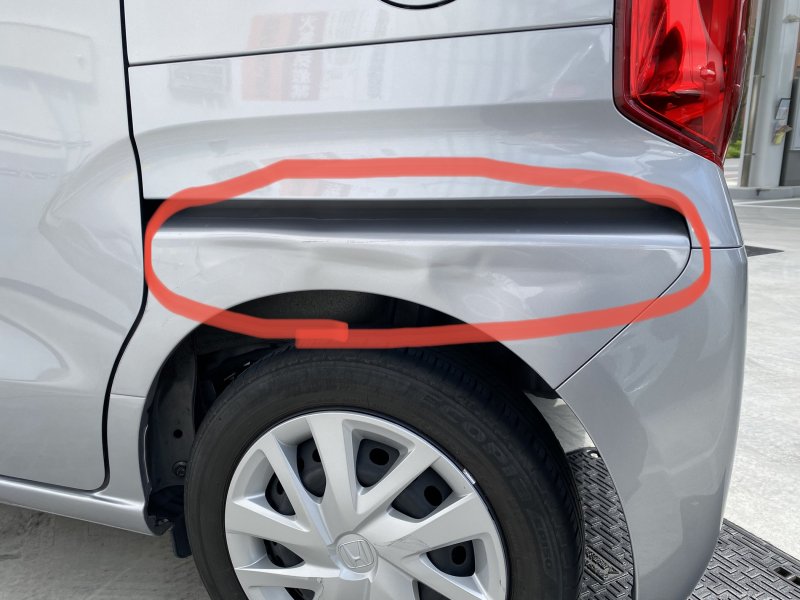 左に曲がる際に、隣の車を巻き込んでできてしまったキズです。