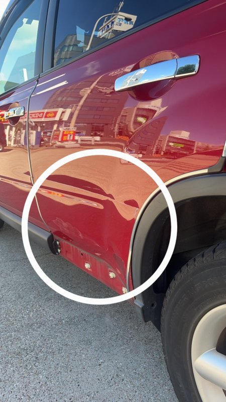 後ドアの樹脂パーツの欠損と左前後ドアにこすりキズがありました。