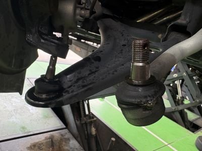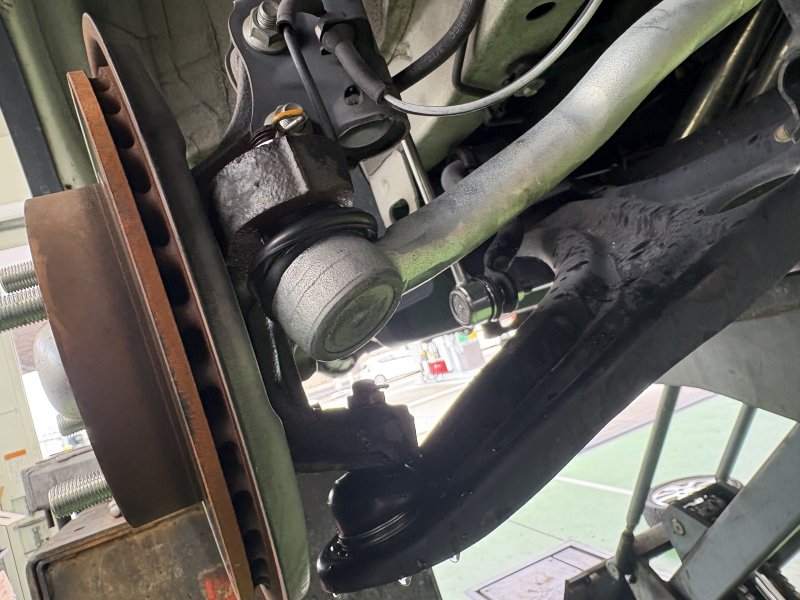 今回は、タイロットエンドブーツ、ロアアームブーツ、スタビライザーリンクロッドの各部品交換、そしてブレーキフルードの交換を行っています。