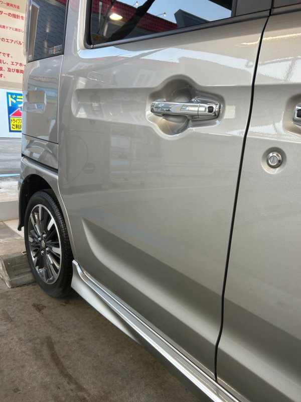 愛知県名古屋市北区|スペーシア(スズキ)のキズ・へこみ直し事例(左リヤドア・左リヤフェンダー・リヤバンパー 鈑金&修理)