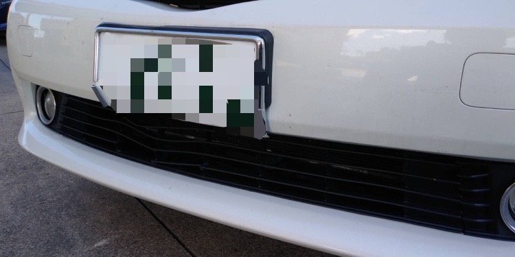 バンパーキズだけでなく、ナンバープレートが曲がり、グリルも割れてしまっています。
