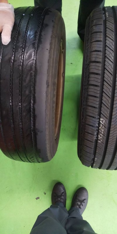 左が古いタイヤ、右が新しいタイヤです。