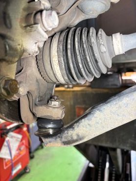 事前見積もりの際にロアアームブーツというゴムのブーツが劣化して破けていたため、一緒に交換しました。