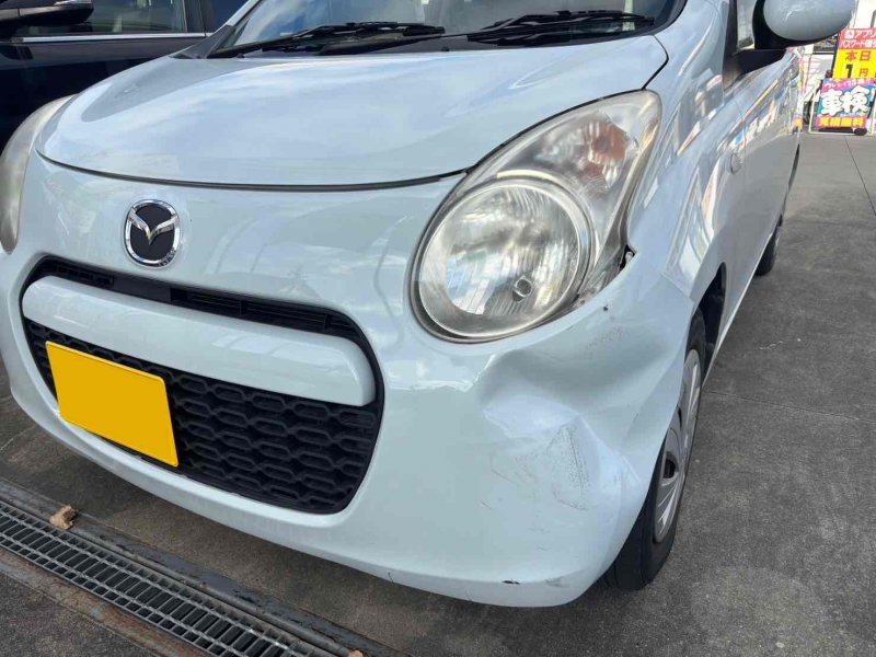 尾張旭市 保険鈑金 ヘコミ スリキズ マツダ キャロル 取替(フロントバンパー、ヘッドライト、フロントフェンダー) 内部骨格作業