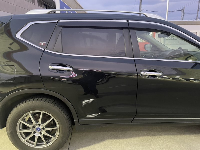 リアドアからクォータパネルにかけてスリキズ、プレスラインの所にへこみがありました😭
