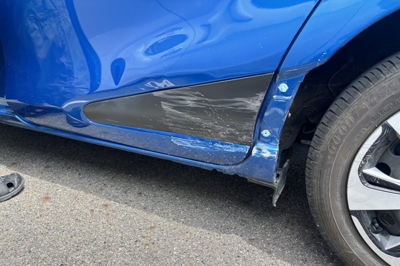 尾張旭市 トヨタ ルーミー 鈑金修理 スリギズ (フロントドアパネル、ロッカアウタパネル)