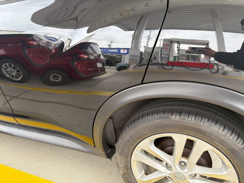 今回はこちらの日産ジュークの左後ろドアとクォーター樹脂パーツを交換させていただきました。