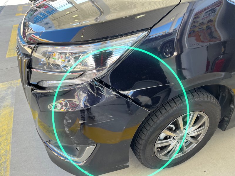 愛知県名古屋市守山区|エスクァイア(トヨタ)のキズ・へこみ直し事例(フロントバンパー、左フロントフェンダー、ヘッドライト交換)