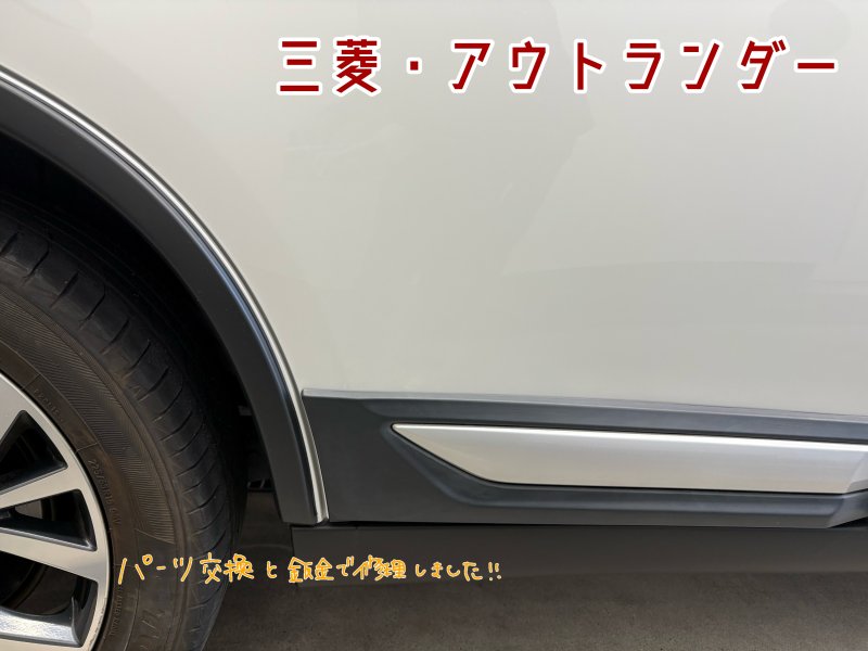愛知県名古屋市守山区|アウトランダー(三菱)のキズ・へこみ直し事例(右リヤドア中古交換・リヤフェンダー修理・樹脂パーツ交換)