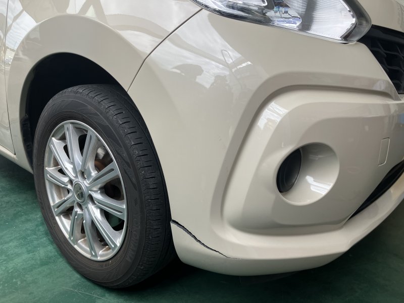愛知県豊田市|タント(ダイハツ)のキズ・へこみ直し事例(フロントバンパー、左フロントフェンダー)
