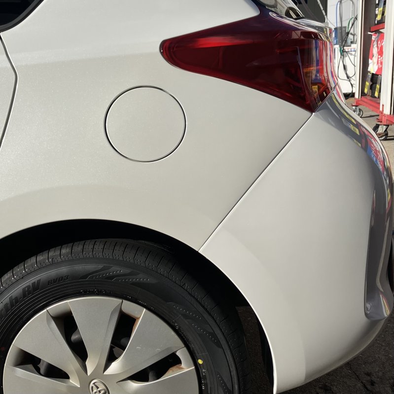愛知県豊田市|ヴィッツ(トヨタ)のキズ・へこみ直し事例(左リヤドアへこみ、左クォータパネルへこみ)