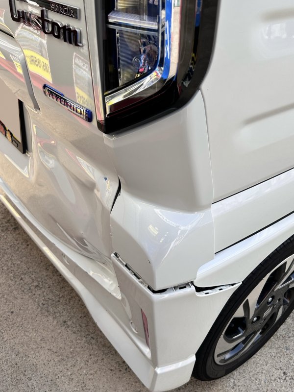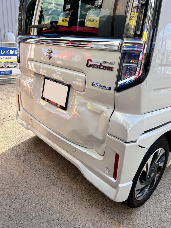 【事例紹介】スペーシアカスタムの追突事故修理|保険対応で新品交換&元通りの美しさに!