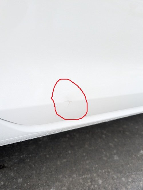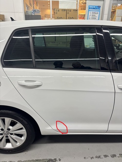フォルクスワーゲンの右リヤドアにキズへこみがありました。
