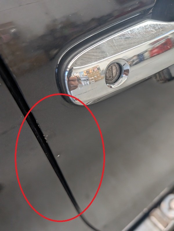 ドアを開けたとき突風でドアが開いてしまい、壁にぶつけてしまったそうです。