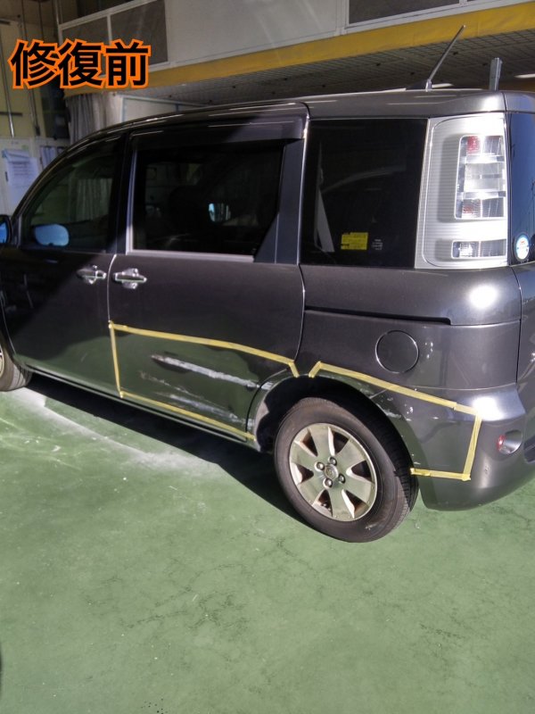 愛知県豊橋市|シエンタ(トヨタ)のキズ・へこみ直し事例(左スライドドア~リアバンパーにかけてのキズ、ヘコミ)
