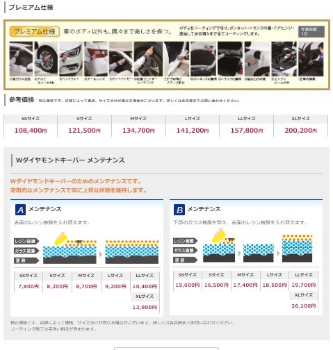 | 修理の箇所・サービス内容 | Wダイヤキーパープレミアム・ボディーコーティング |
