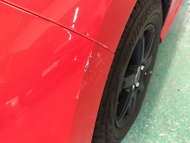山梨県笛吹市|フィット(ホンダ)のキズ・へこみ直し事例(フロントバンパー 左 ポールこすり傷 塗装)